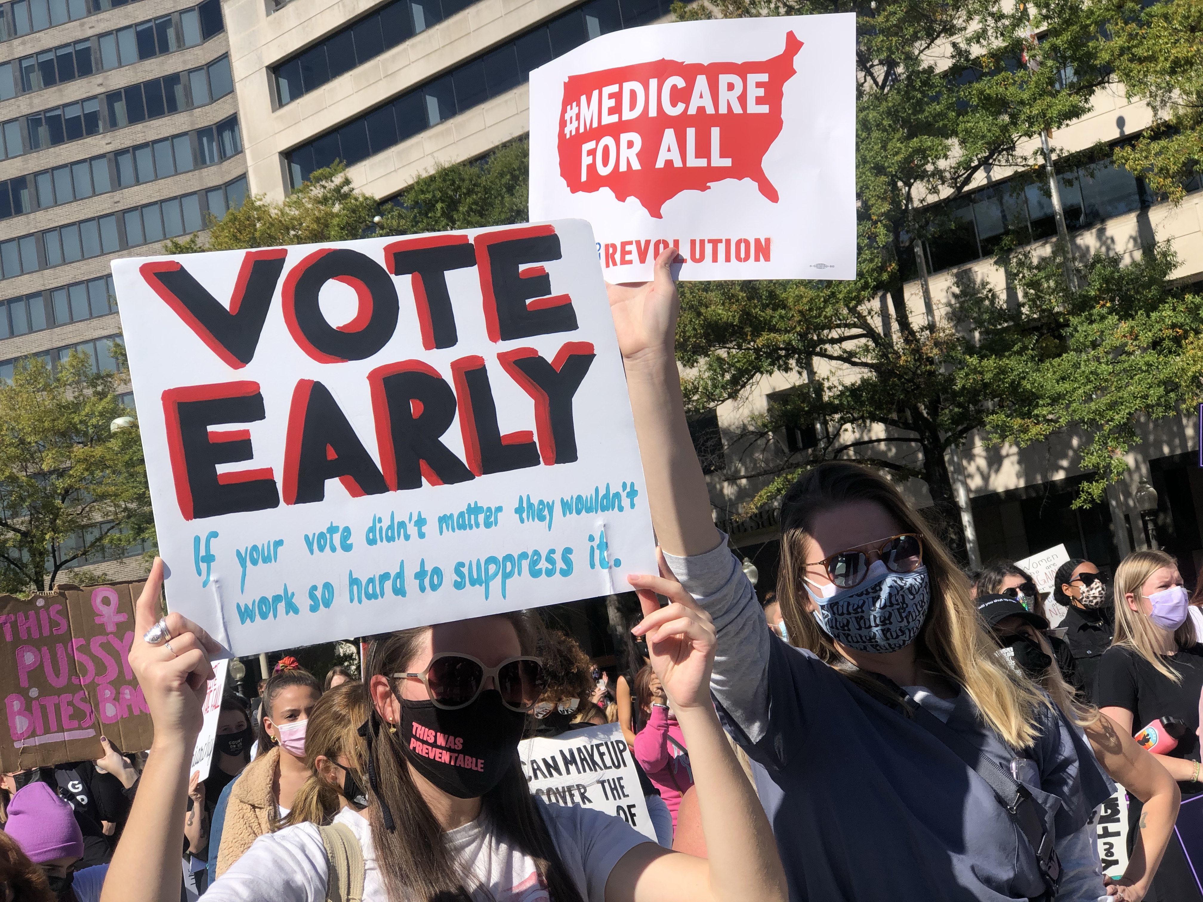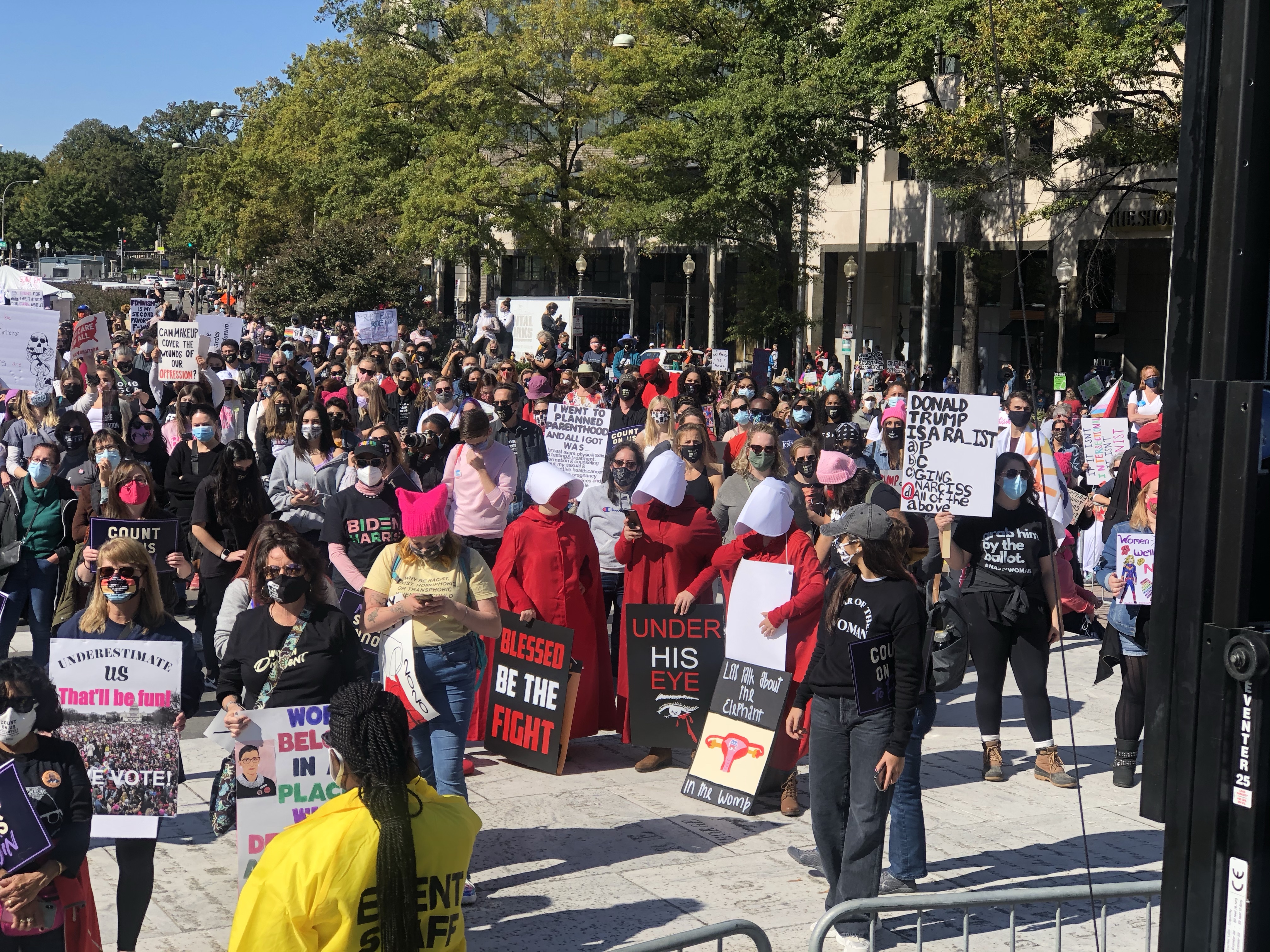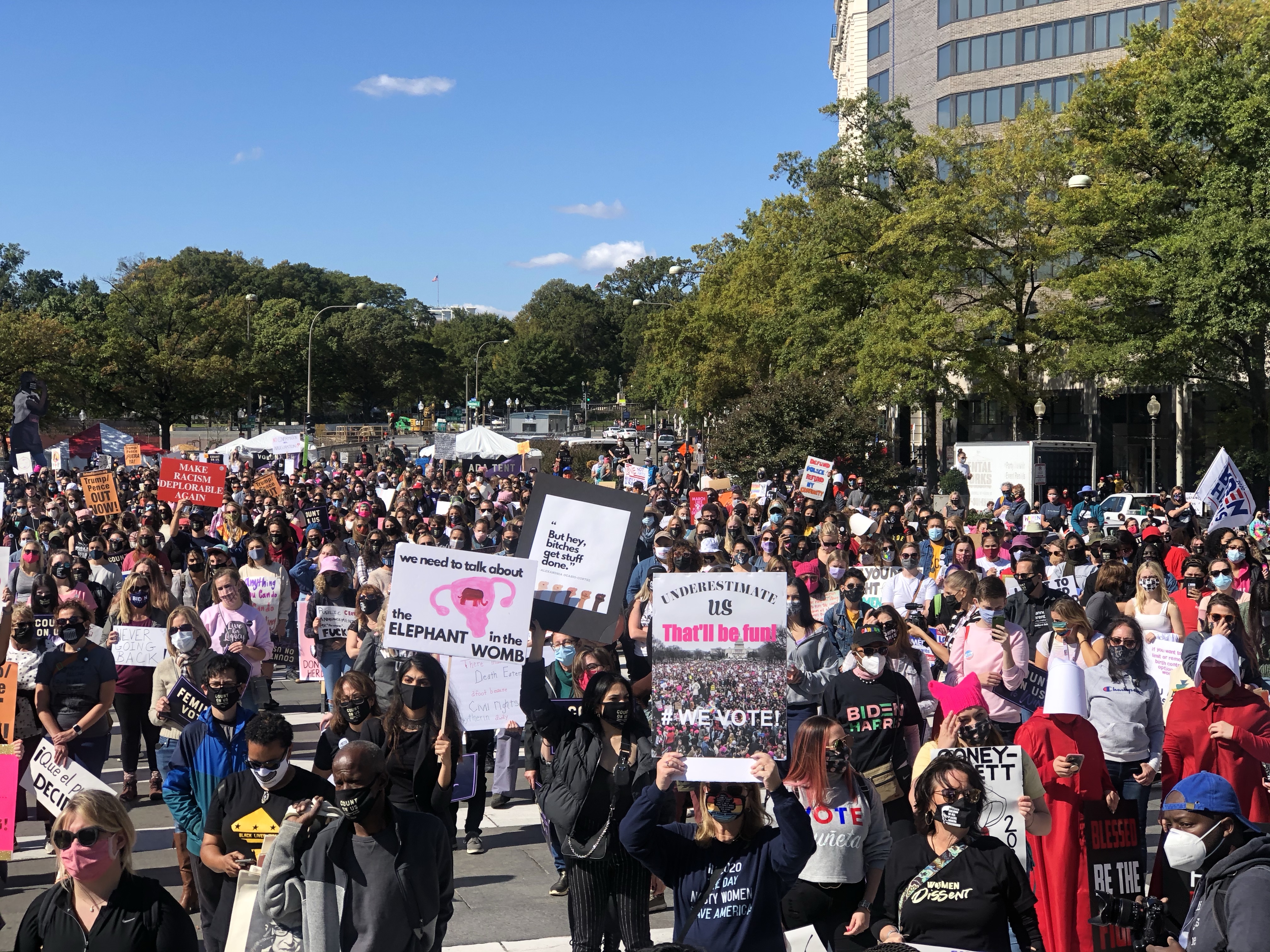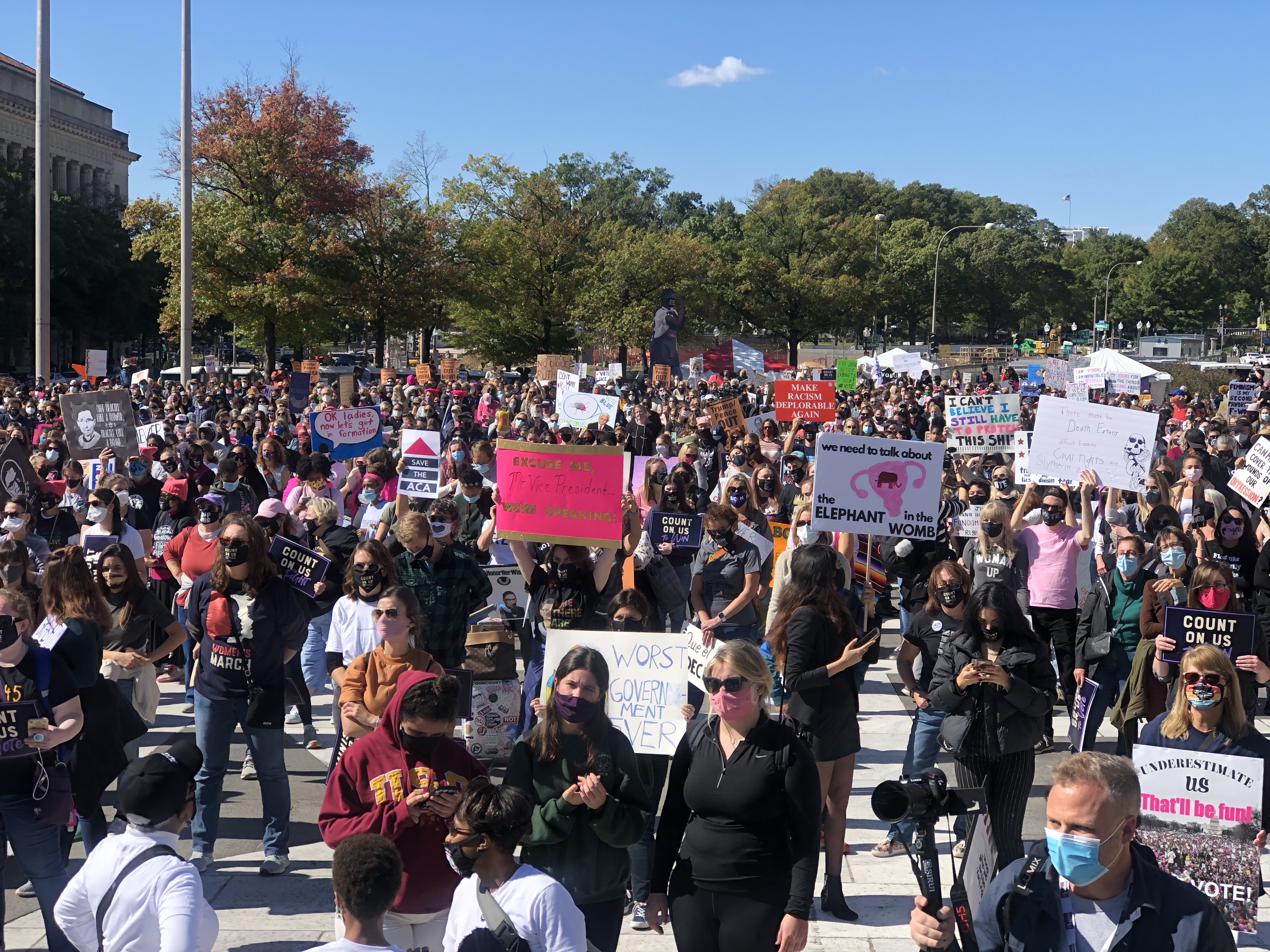 Due to the COVID-19 pandemic, lower turnouts were expected due to the older demographics of those who attend the Women’s March and precautions are being put in place with the organizers asking everyone to social distance and wear face coverings when attending these marches. The organizers advise against people with COVID-19 symptoms from attending the march in person along with advising people against traveling to Washington DC and instead attending local marches if possible. The Women’s March Organization also held virtual events on the same day as the march along with car caravans for those that can’t attend the march with the focus towards voting rights and opposition against the supreme court confirmation process of Amy Coney Barrett.