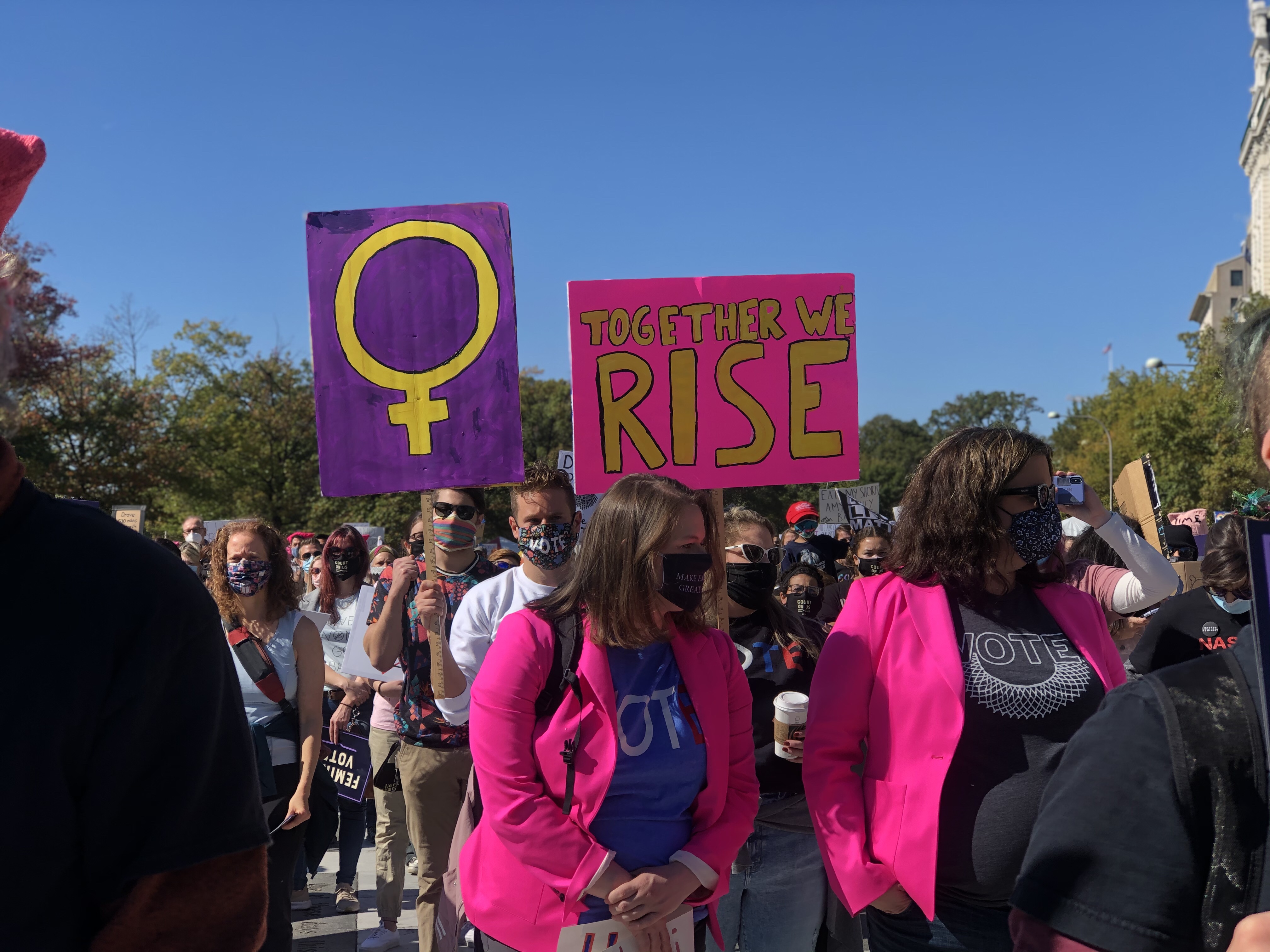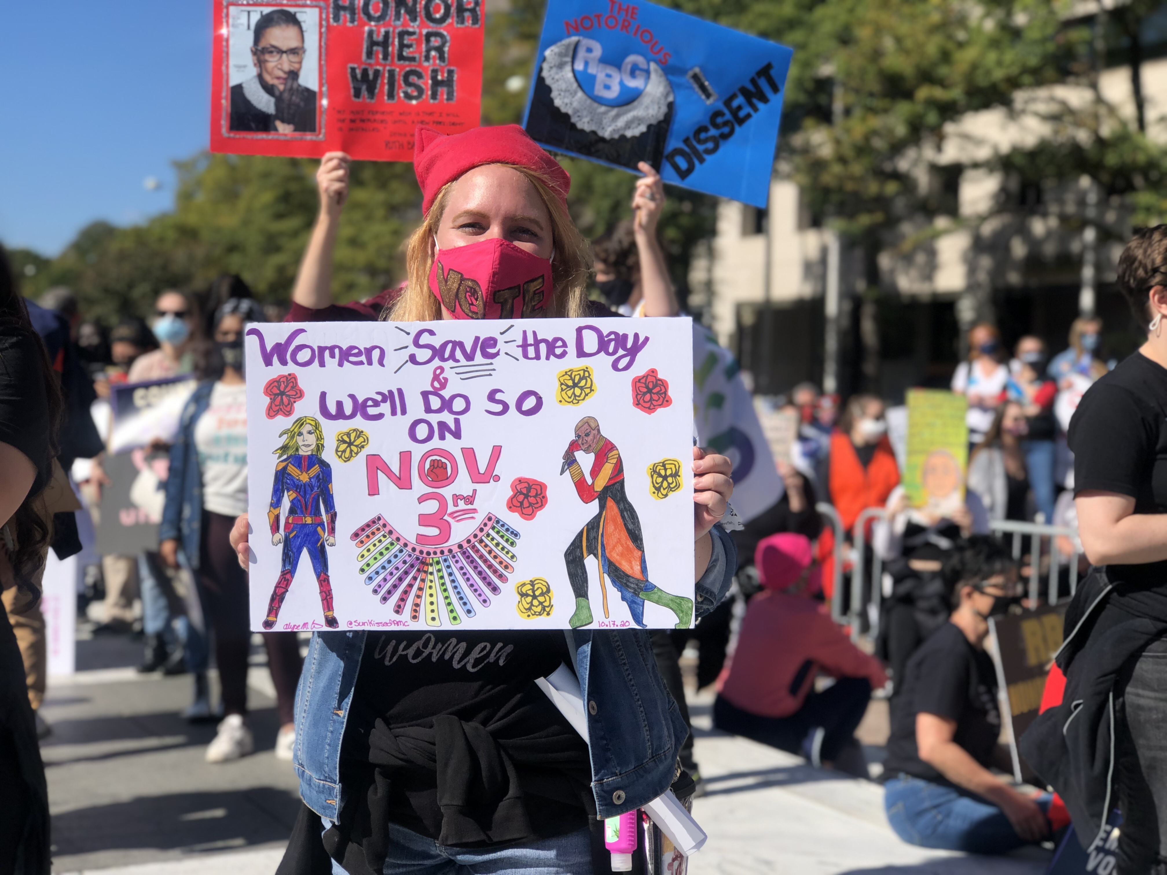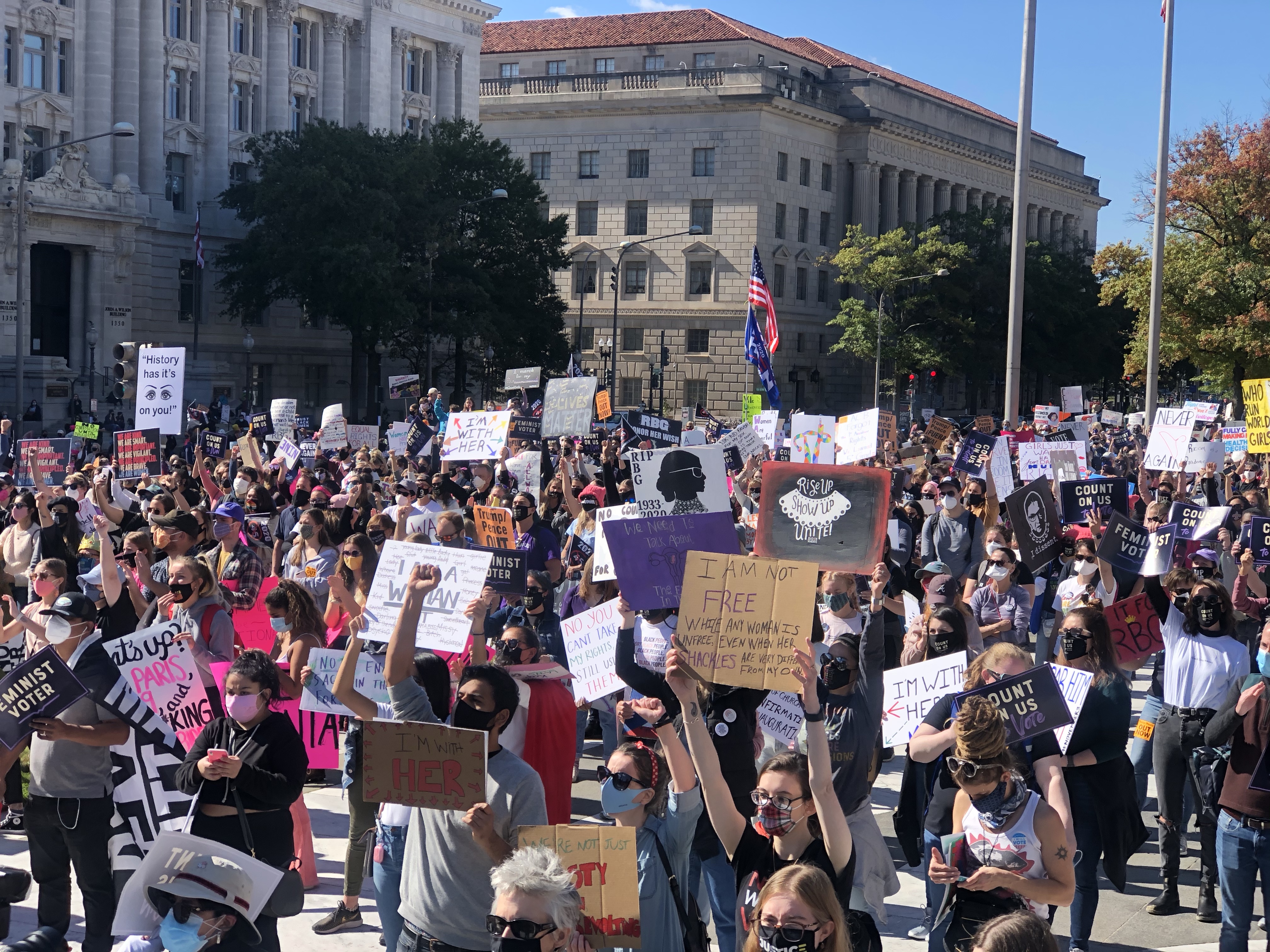 Our Founder Nora Bonds had the opportunity to attend the second Women’s March 2020 was held on October 17, 2020 in Washington DC. Even though the Women’s March organization held a vigil in Washington, D.C. to honor the late justice, due to President Donald Trump wanting to fill the seat of Ruth Bader Ginsburg before the 2020 election with the appointment nomination of Amy Coney Barrett, the Women’s March Organization in partnership with the We Demand More Coalition intention of organizing this march was to send a clear message to the Trump administration about his agenda along with the opposition towards appointing a new Supreme Court Justice before the 2020 election especially with the possibility of Roe V Wade being overturned if Amy Coney Barrett passes the senate hearings and gets officially appointed to the Supreme Court. Some of the many rights that are at stake if Amy Coney Barrett gets appointed to the Supreme Courtincludes abortion rights, LGBTQ rights, and voting rights.