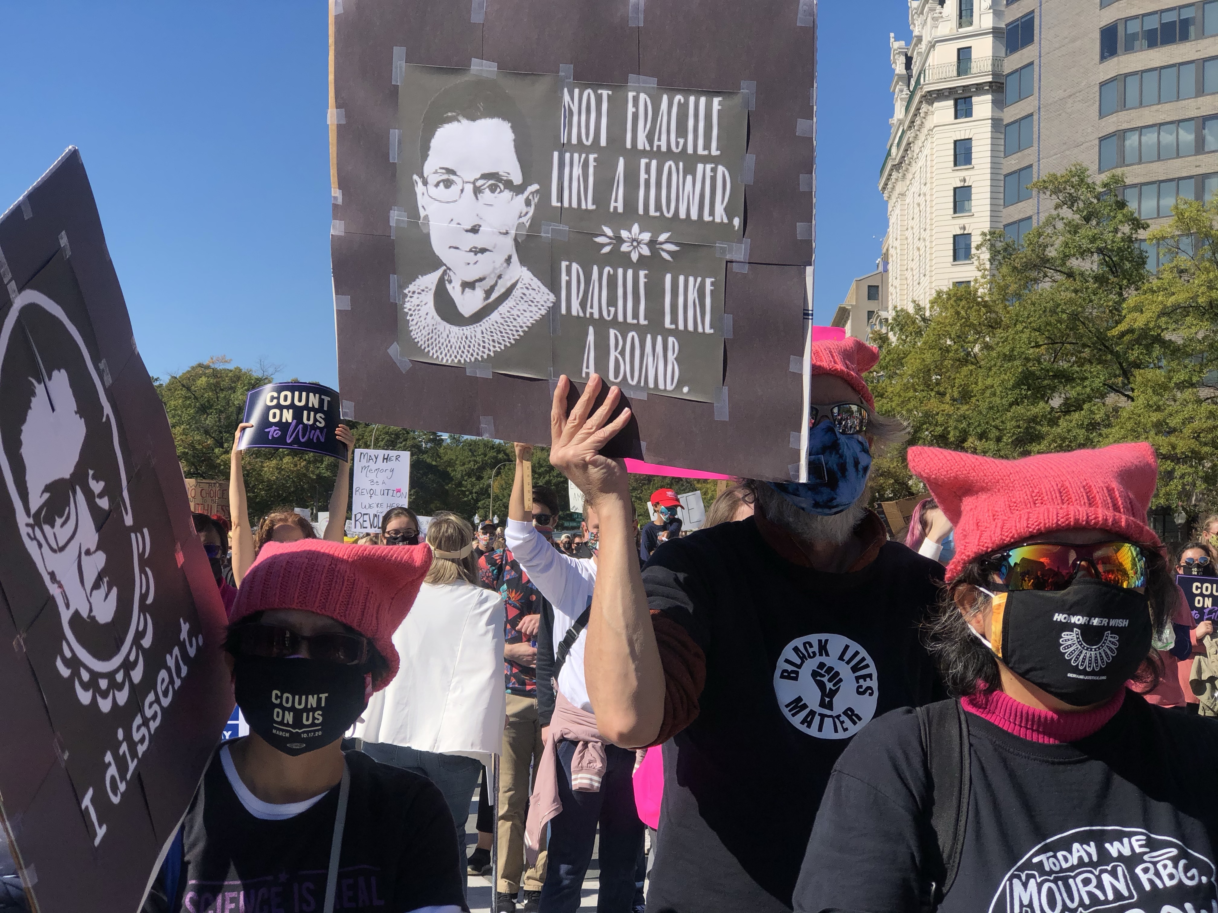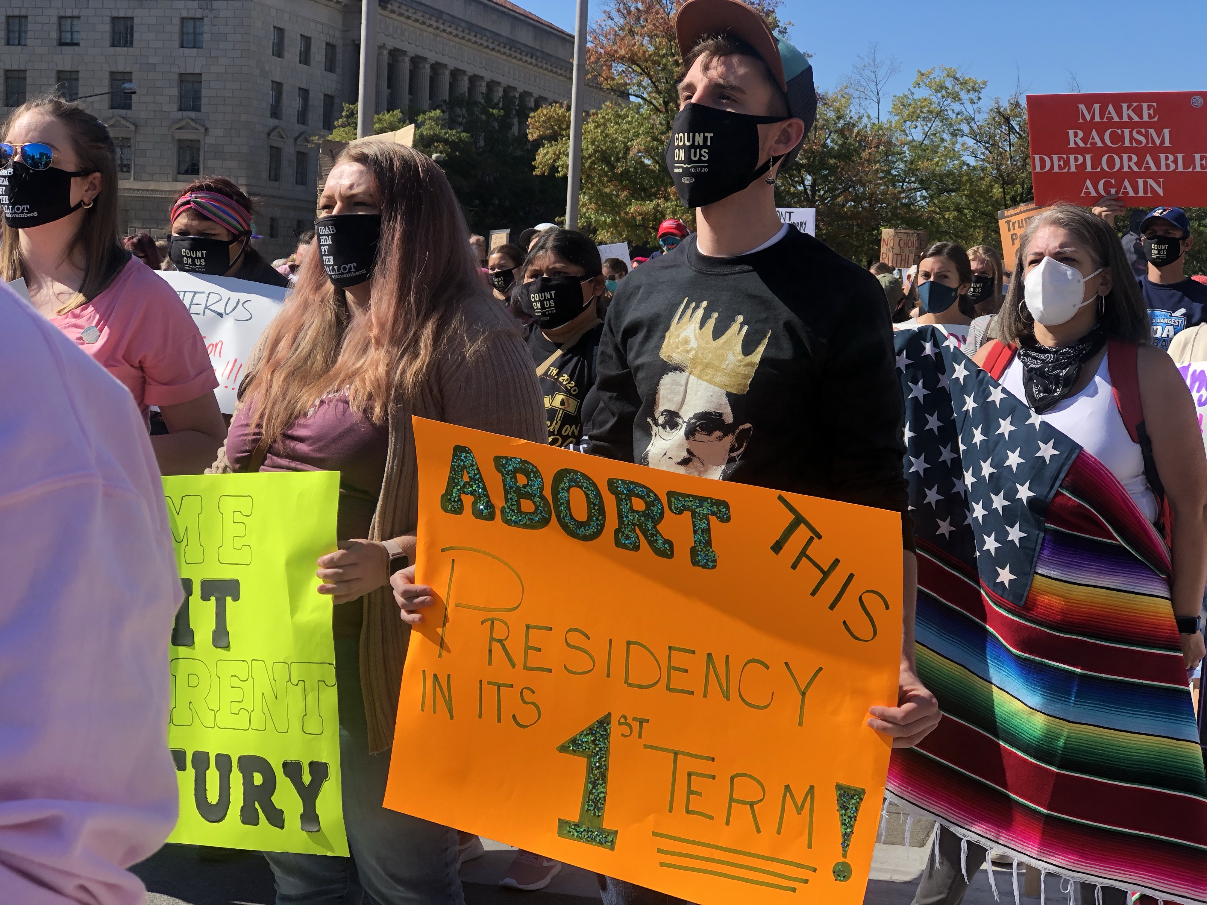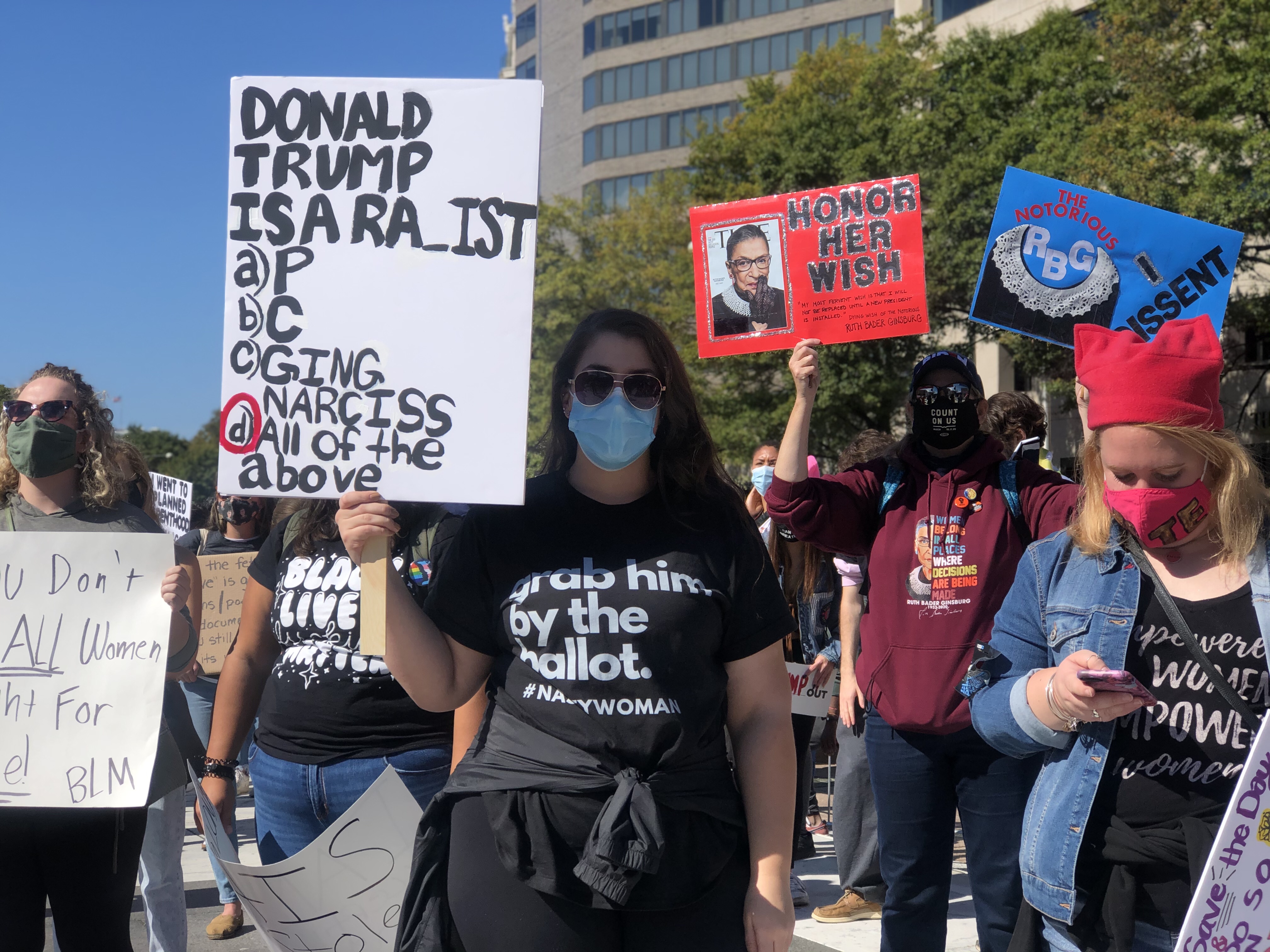 Our Founder Nora Bonds had the opportunity to attend the second Women’s March 2020 was held on October 17, 2020 in Washington DC. Even though the Women’s March organization held a vigil in Washington, D.C. to honor the late justice, due to President Donald Trump wanting to fill the seat of Ruth Bader Ginsburg before the 2020 election with the appointment nomination of Amy Coney Barrett, the Women’s March Organization in partnership with the We Demand More Coalition intention of organizing this march was to send a clear message to the Trump administration about his agenda along with the opposition towards appointing a new Supreme Court Justice before the 2020 election especially with the possibility of Roe V Wade being overturned if Amy Coney Barrett passes the senate hearings and gets officially appointed to the Supreme Court. Some of the many rights that are at stake if Amy Coney Barrett gets appointed to the Supreme Courtincludes abortion rights, LGBTQ rights, and voting rights.