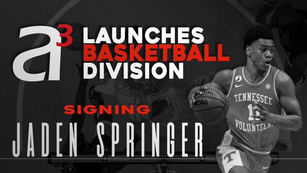 Former five-star recruit and University of Tennessee guard, Jaden Springer, has signed with A3 Athletics. Springer, the 18-year-old Charlotte native, is expected to be a 1st round selection in the 2021 NBA Draft. The 6-foot-4, 204-pound freshman led the Vols in scoring, averaging 12.5 points per game. He also led Tennessee in 3-point percentage, shooting 43.5% from beyond the arc. Springer was named to the 2021 All-Freshman Team.